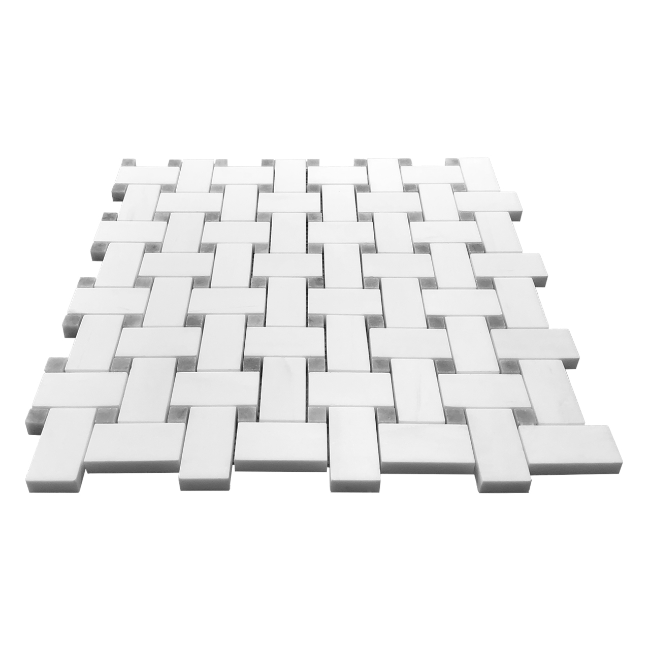 Bianco Dolomite Italian Marble Basketweave with Bardiglio Gray Dots Mosaic Tiles available in Polished and Honed finishes. Uses include Kitchen Backsplash, Bathroom Wall, Floor Tiles, and Shower Mosaics. Sample Sale Price $4.95. First Quality Marble in Stock Ready to Ship. Free shipping continental USA. The same Day In-Store Pickup is available. Visit our showrooms for complimentary design ideas. Basketweave mosaic is a tile perfect for both residential and commercial projects. Basketweave Patterned Mosaic Tiles are mainly preferred as floor tiles for their clean and aesthetic qualities. A large selection of coordinating products are available, including Bianco Dolomite herringbone mosaics, Bianco Dolomite chevron mosaics, Bianco Dolomite hexagon mosaics, 3x6 marble subway tiles, 12x12 Bianco Dolomite marble tiles, 4x4 Bianco Dolomite marble tiles, Bianco Dolomite Borders, Bianco Dolomite moldings and Bianco Dolomite Baseboards.