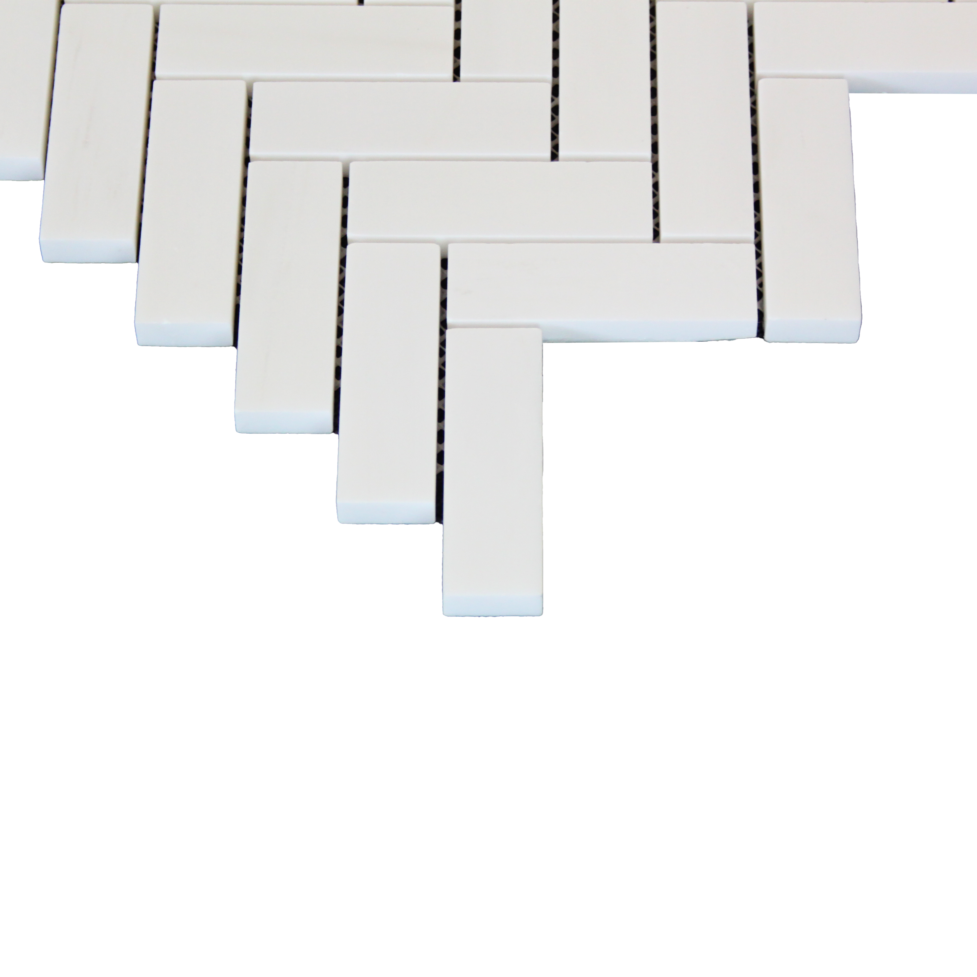 Bianco Dolomite Marble Herringbone 1x3 Mosaic Tile is an exclusive Italian natural marble collection. Premium grade marble herringbone tile is perfect for both residential and commercial projects. A huge selection of coordinating products are available, including Bianco Dolomite 3D Cube Diamond Mosaic tile, Bianco Dolomite 4x12 Wide Bevel Subway tile, Bianco Dolomite Large Diamond Mosaic tile, Bianco Dolomite fan Shaped Fish Scale Mosaic tile, Bianco Dolomite Bullnose Pencil Molding. Bianco Dolomite Italian Marble collection available in honed and polished finishes.