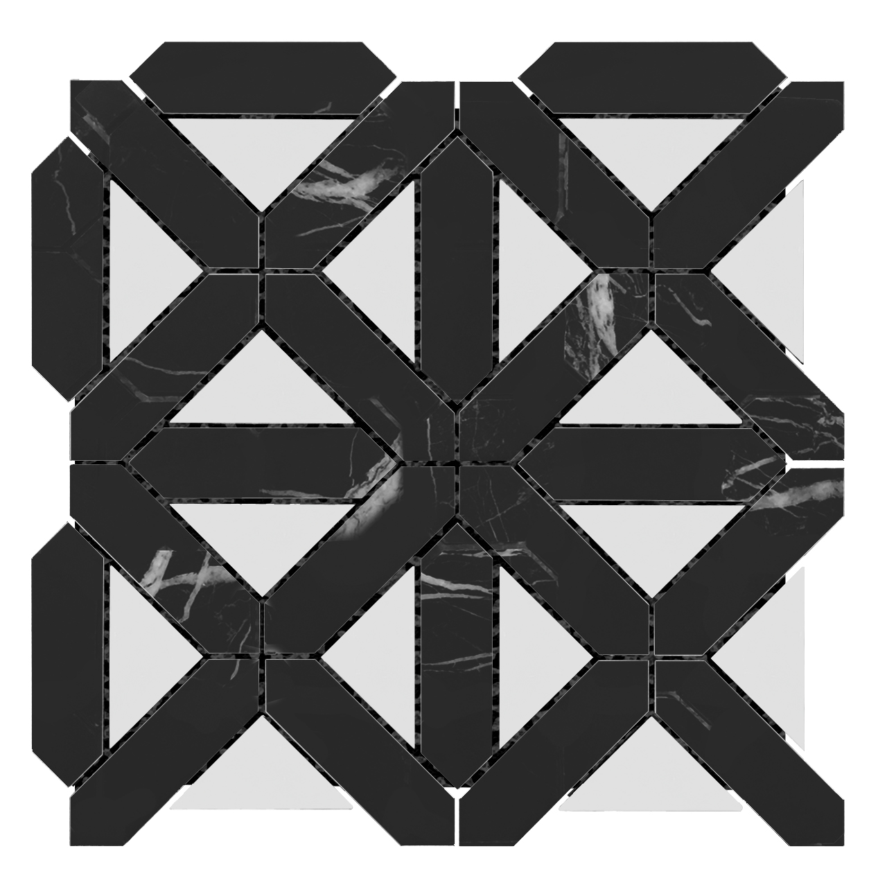 Nero Marquina Black Marble with Bianco Dolomite Triangles Geometrica Mosaic Tile Honed