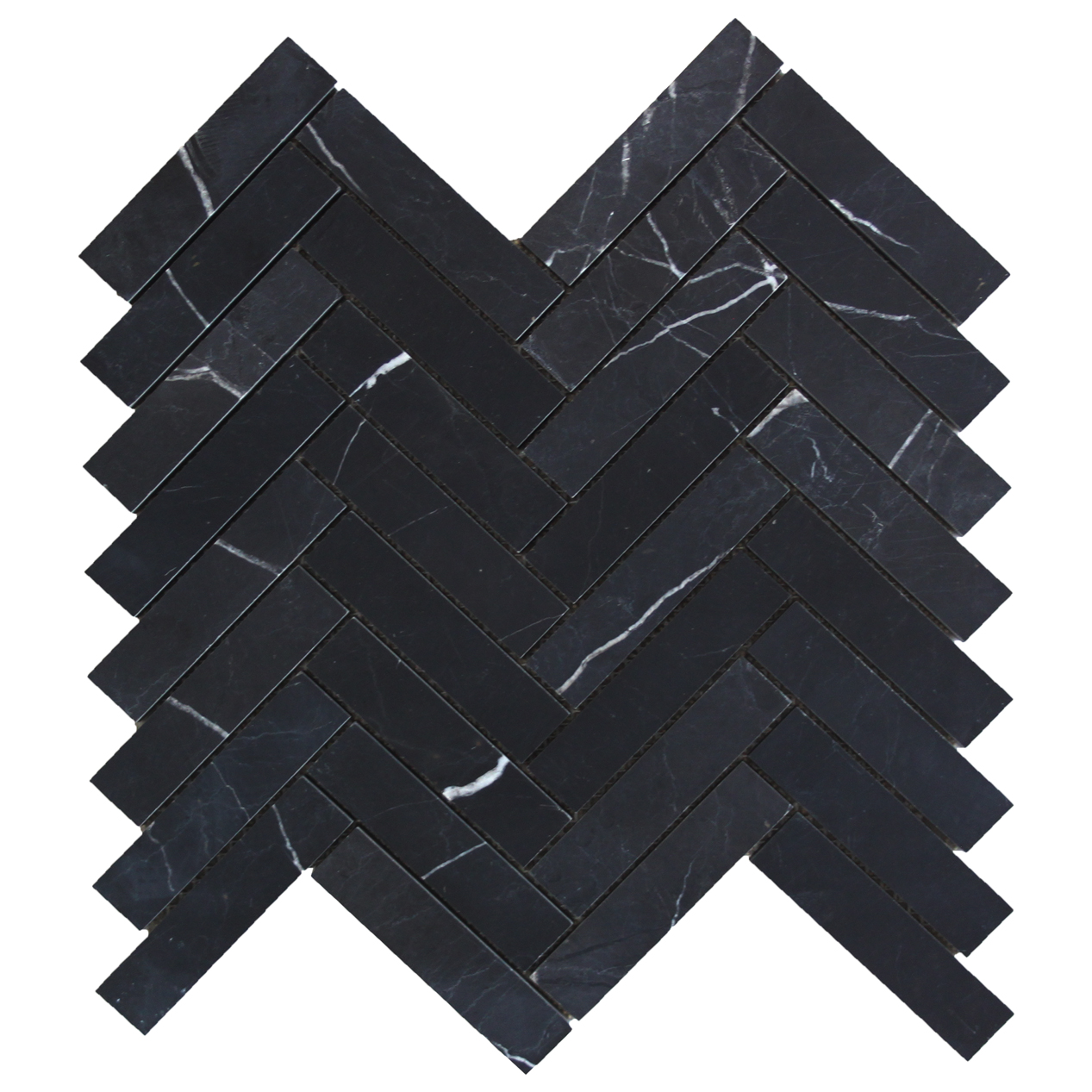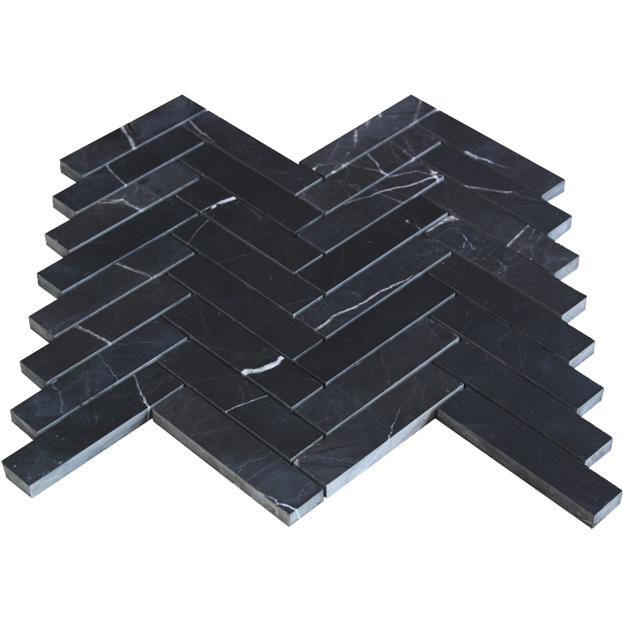 - 1" x 4" Herringbone Mosaic Tile Polished- Premium Grade Nero Marquina Black Marble