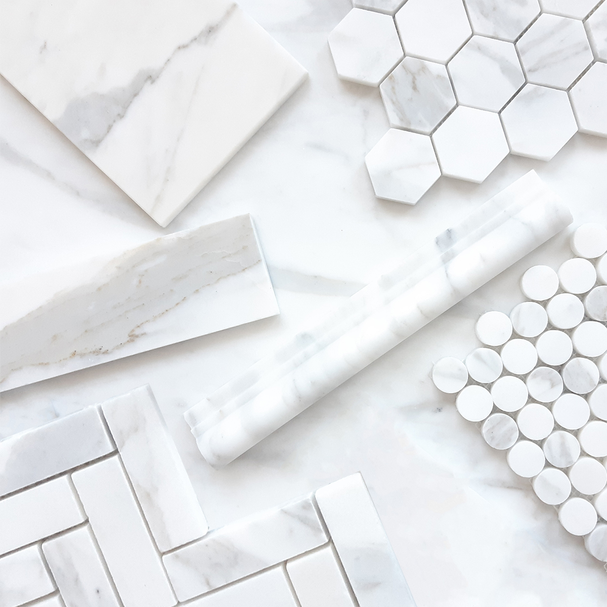Calacatta Gold Marble Herringbone 1x4 Mosaic Tile is an exclusive Italian natural marble collection. Elegant grade marble herringbone tile is perfect for both residential and commercial projects. Calacatta Gold has been the best choice of leaders in the antique world for its strength and beauty. The Carrara Marble is pleased to offer the Premium Calacatta Gold Mosaic Tiles, highly prized for its rich coloration and beautiful veining. This Italian marble presents graceful veining patterns of gold and white across a backdrop of clear honeyed white in a pure and timeless matte and glossy finish. A huge selection of coordinating products are available, including Calacatta 3D Cube Diamond Mosaic Tile, Calacatta 4x12 Wide Bevel Subway Tile, Calacatta Large Diamond Mosaic Tile, Calacatta Fan Shaped Fish Scale Mosaic Tile, Calacatta Bullnose Pencil Molding. Calacatta Gold Italian Marble collection available in honed and polished finishes.
