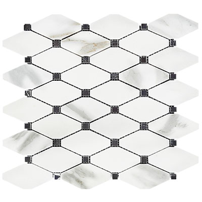 Calacatta Gold Marble Long Octagon with Black Dots Mosaic Tiles available in Honed and Polished finishes. Uses include Kitchen Backsplash, Bathroom Wall, Floor Tiles, and Shower Mosaics. Sample Sale Price $4.95. First Quality Marble in Stock Ready to Ship. Free shipping continental USA. The same Day In-Store Pickup is available. Visit our showrooms for complimentary design ideas. Long Octagon mosaic is a tile perfect for both residential and commercial projects. Long Octagon Patterned Mosaic Tiles are mainly preferred as floor tiles for their clean and aesthetic qualities. A large selection of coordinating products are available, including Calacatta Gold basketweave mosaics, Calacatta Gold chevron mosaics, Calacatta Gold hexagon mosaics, 3x6 marble subway tiles, 12x12 Calacatta Gold marble tiles, 4x4 Calacatta Gold marble tiles, Calacatta Gold Borders, Calacatta Gold moldings and Calacatta Gold Baseboards.
