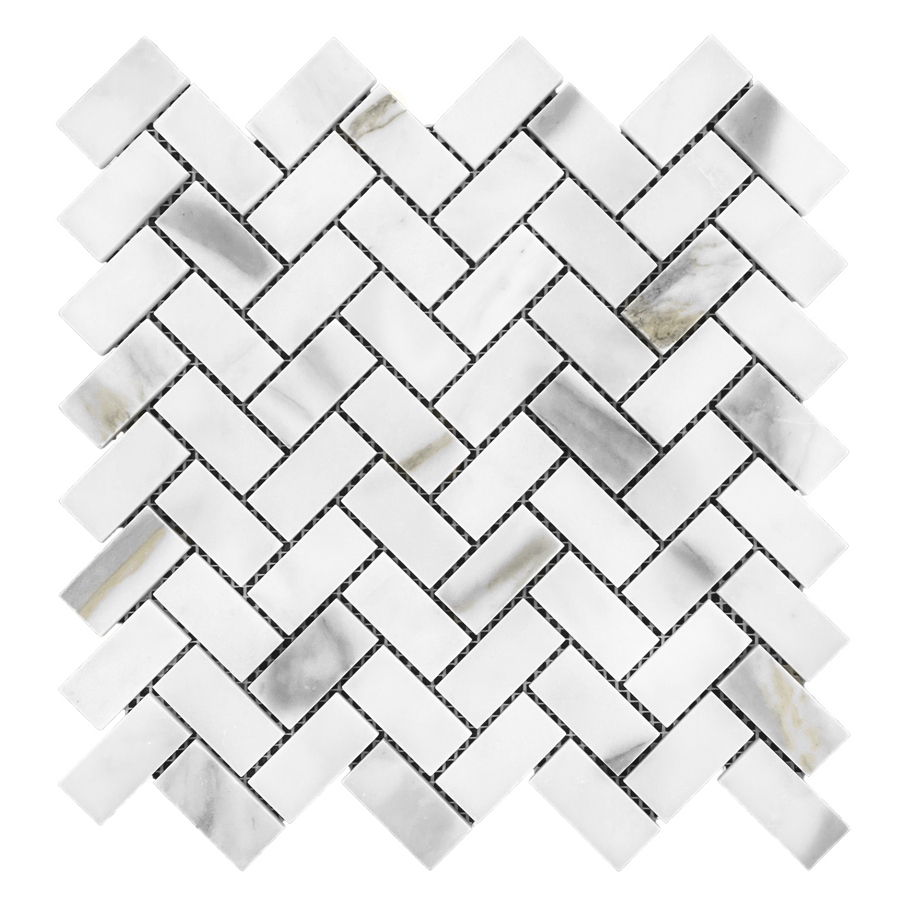 Calacatta Gold Italian Marble 1" x 2" Herringbone Mosaic Tile Polished