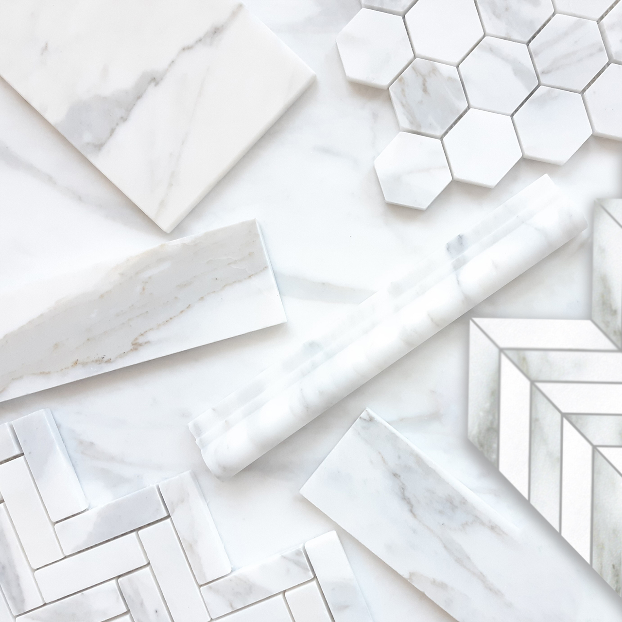 Calacatta Gold Marble Chevron 1x4 Mosaic Tile is an exclusive Italian natural marble collection. We have an exclusive collection of Italian Calacatta Chevron Mosaic Tiles. Our premium grade Marble Chevron Tile is perfect for both residential and commercial projects. Calacatta Gold has been cherished through the ages for its strength, rich coloration and beautiful veining. The veining patterns of gold and brown across a background of creamy white. Calacatta Gold Herringbone collection is available in both matte and glossy finish. A huge selection of coordinating products such as Calacatta 3D Cube Diamond Mosaic Tile, Calacatta 4x12 Wide Bevel Subway Tile, Calacatta Large Diamond Mosaic Tile, Calacatta Fan Shaped Fish Scale Mosaic Tile, Calacatta Bullnose Pencil Molding. Calacatta Gold Italian Marble are also available in honed and polished finishes.