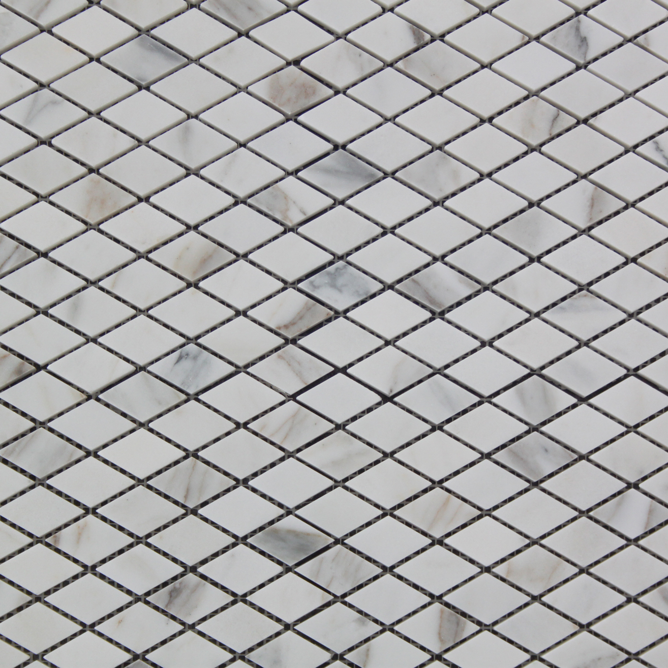 Calacatta Gold Diamond Mosaic Tile also known as Calcutta Gold Diamond Mosaic Marble. Available in honed, polished finishes. Premium grade (rhomboid) Diamond mosaic tile perfect for both residential and commercial projects. (rhomboid) Diamond Mosaic Tiles mainly preffered as floor tiles for its clean, aesthetic qualities. A large selection of coordinating products are available and includes Calacatta Gold basketweave mosaics, Calacatta herringbone mosaics, Calacatta hexagon mosaics, 3x6 marble subway tiles, 12x12 Calacatta marble tiles, 4x4 Calacatta marble tiles, Calacatta borders, Calacatta moldings and Calacatta baseboards.