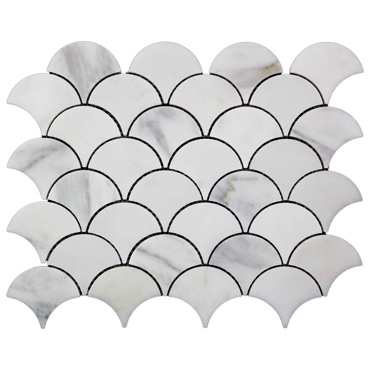 Calacatta Gold Italian Marble Fish Scale Fan Shaped Sea Shell Mosaic Tile Honed