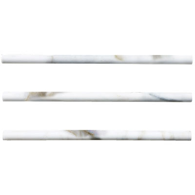 Calacatta Gold Italian Marble Bullnose Pencil Molding Honed is also known as Calacutta Oro Marble Bull nose Pencil Molding. Premium grade marble bullnose pencil is perfect for both residential and commercial projects (kitchen renovation, shower remodeling, renovating bathroom, backsplash, flooring, cladding walls). A large selection of coordinating products are available, including Calacatta basketweave mosaic tile, Calacatta 1" hexagon mosaic tile, Calacatta 2" hexagon mosaic tile, Calacatta herringbone mosaic tile, Calacatta 2x4 subway mosaic tile. Calacatta Gold Italian Marble collection available in honed and polished finishes.