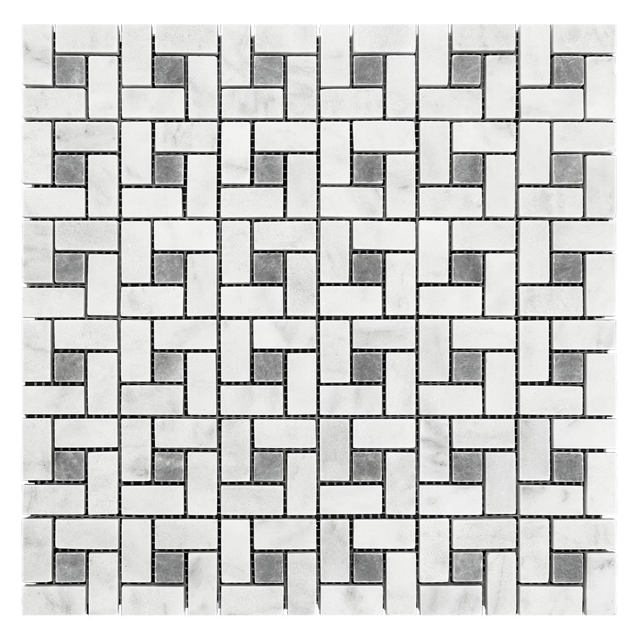 Bianco Carrara Target Pinwheel Pattern Mosaic Tile is also known as White Carrera Target Pinwheel Mosaic Marble Tile. Premium grade target pinwheel pattern mosaic tile is perfect for both residential and commercial projects. Target Pinwheel Pattern Mosaic Tiles are mainly preferred as floor tiles for their clean, aesthetic qualities. A large selection of coordinating products are available, including Carrara basketweave mosaics, Carrara herringbone mosaics, Carrara hexagon mosaics, 3x6 marble subway tiles, 12x12 Carrara marble tiles, 4x4 Carrara marble tiles, Carrara borders, Carrara moldings and Carrara baseboards, available in honed and polished finishes.