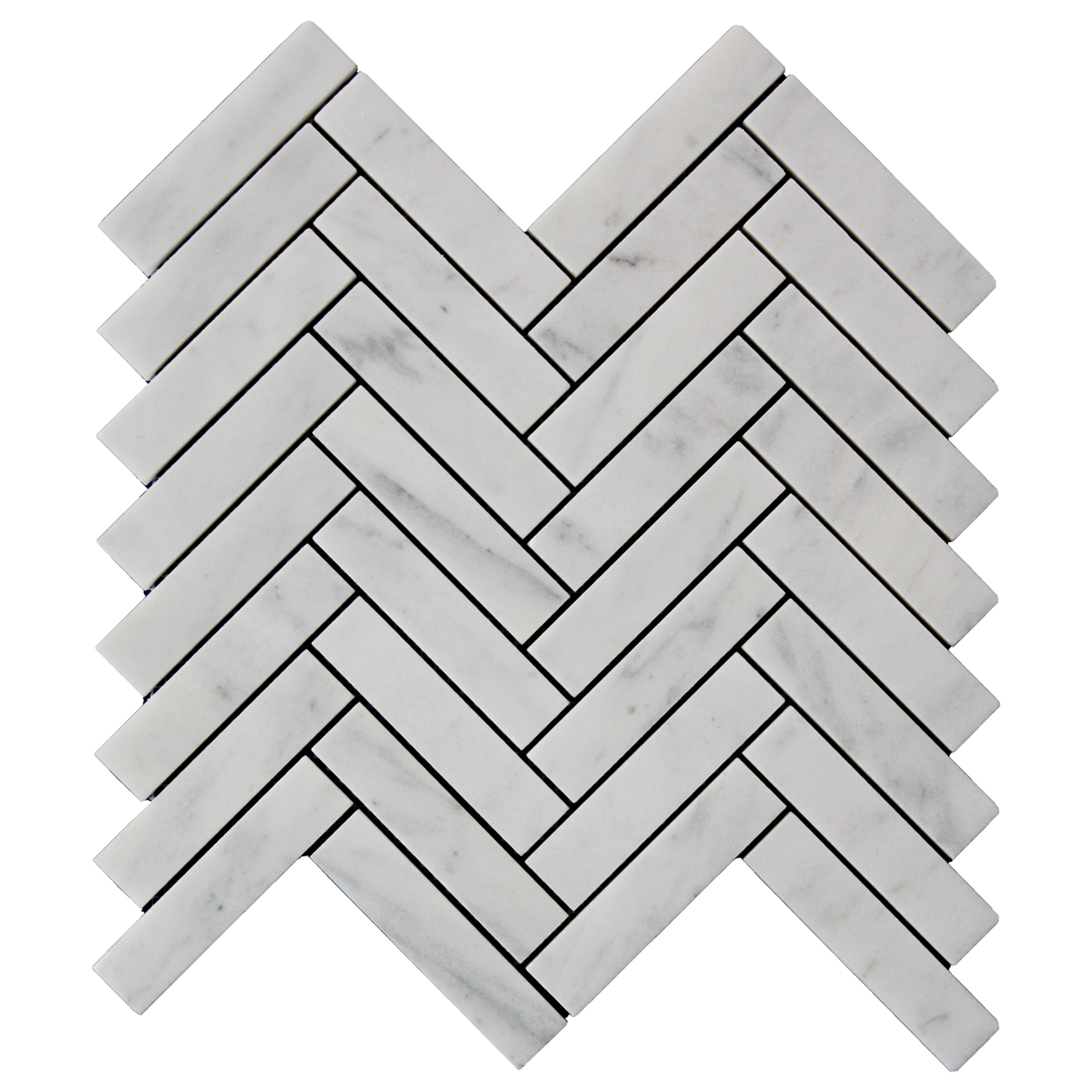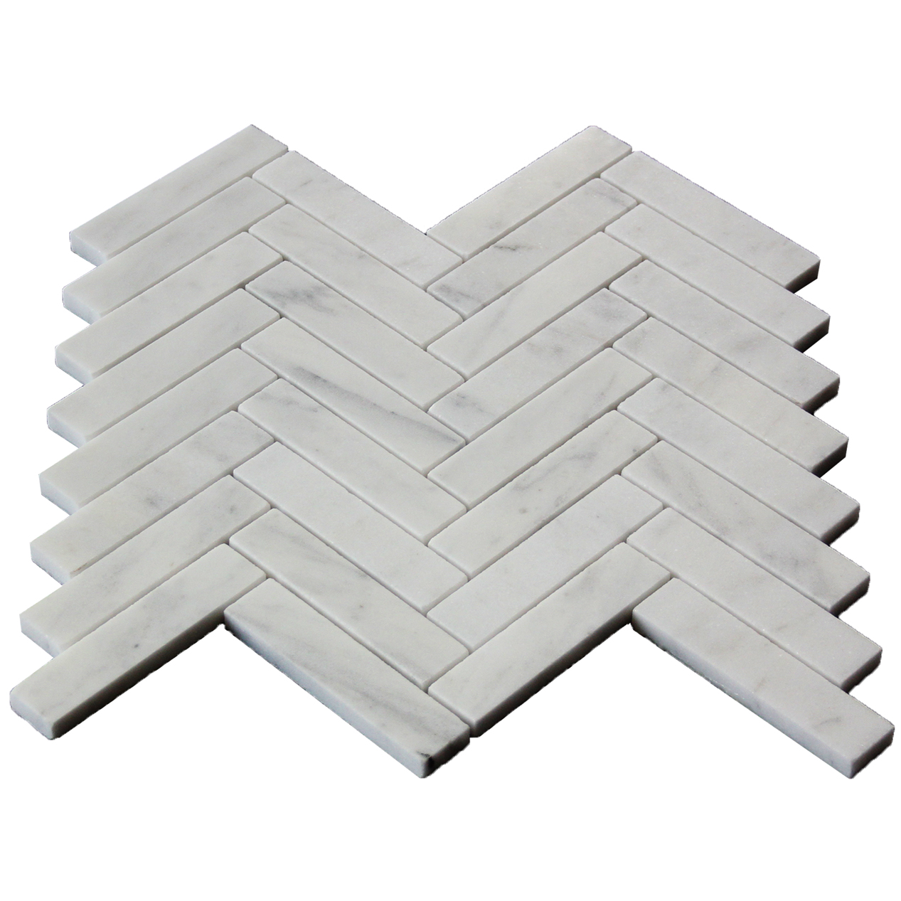Carrara White Italian Marble 1" x 4" Herringbone Mosaic Tile Polished