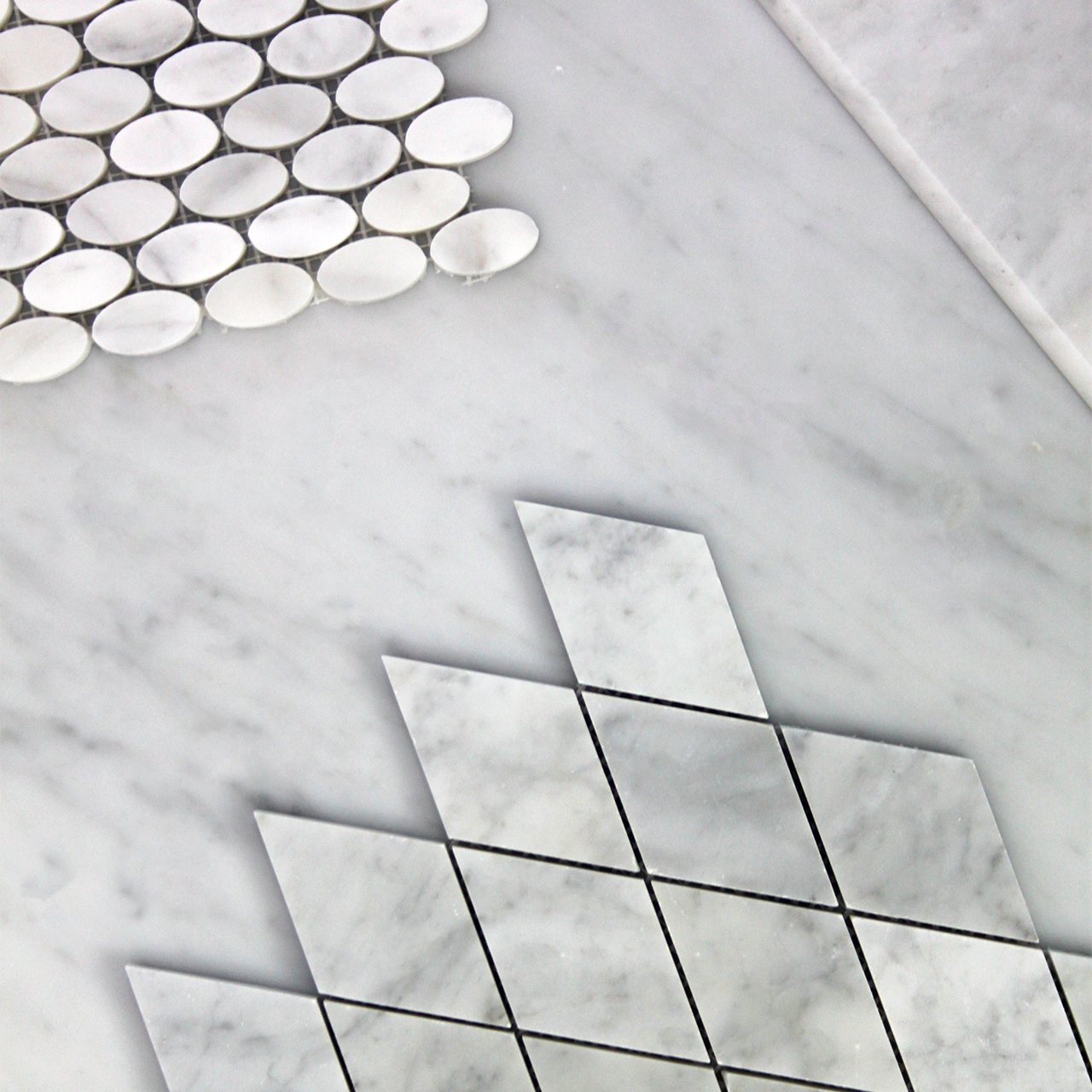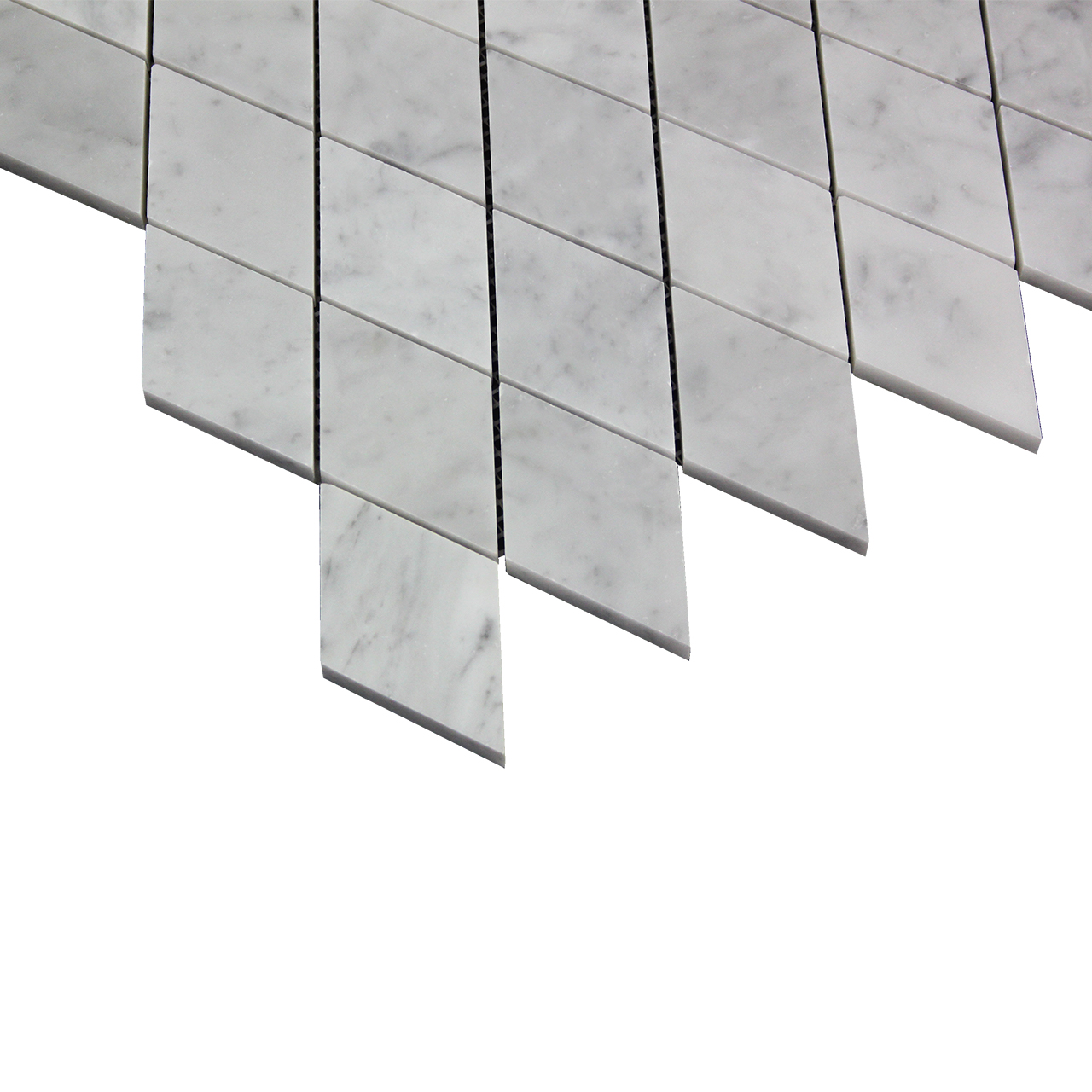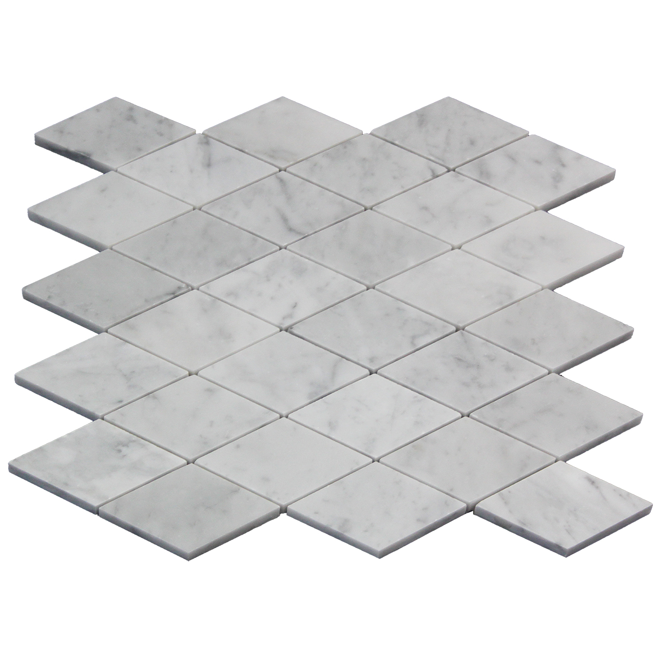 Premium Grade Carrara White Marble Large Diamond Mosaic Tile Glossy Polished