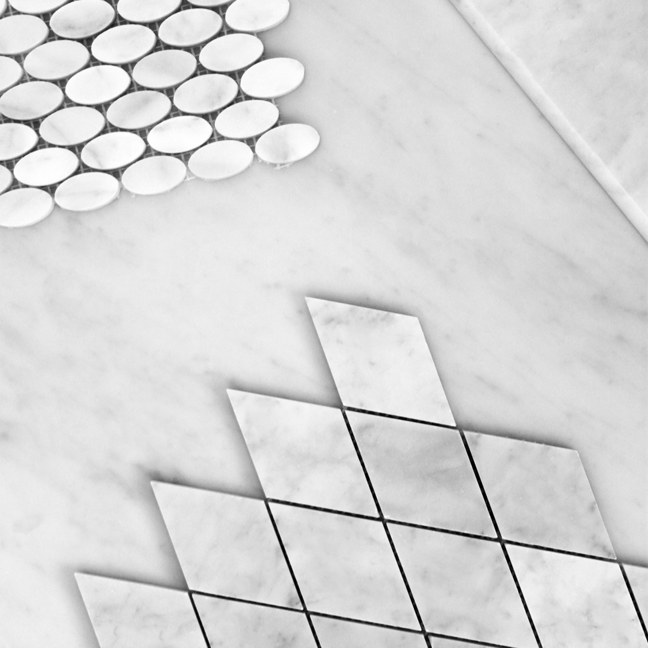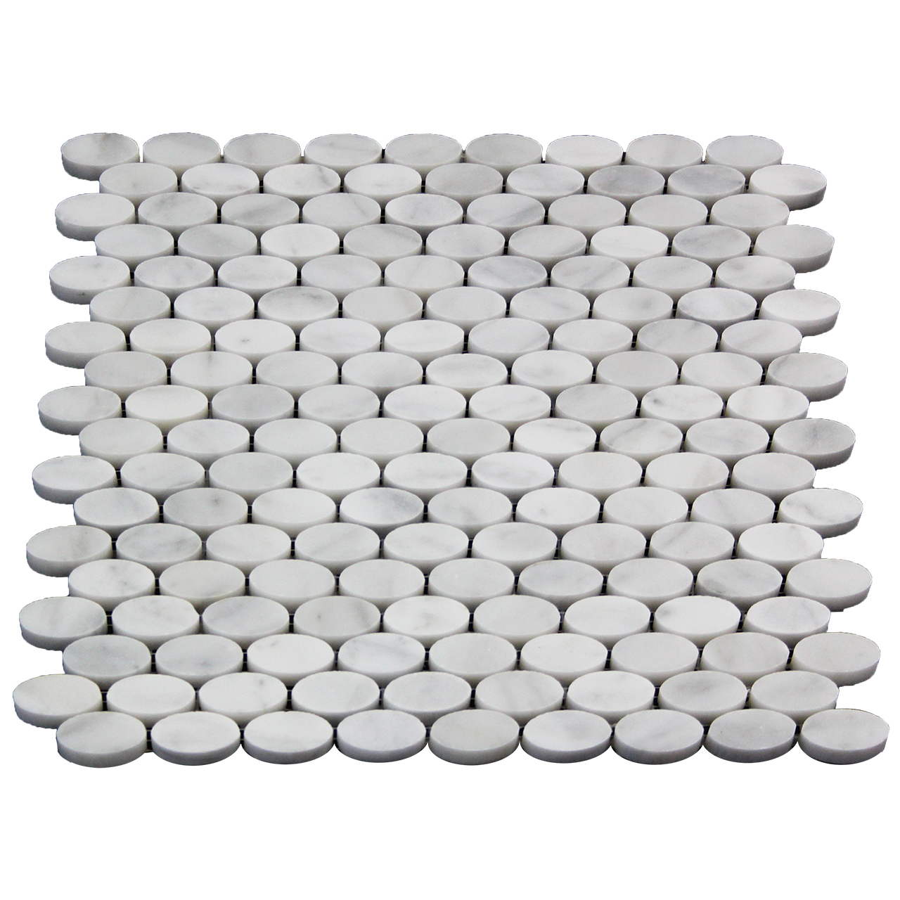 Carrara White Marble Ellipse Oval Mosaic Tile, available in honed and polished finish, premium grade Carrara Ellipse Oval mosaic tile perfect for both residential and commercial projects. Basketweave Mosaic Tiles are mainly preferred as floor tiles for its clean, aesthetic qualities. A large selection of coordinating products are available and includes Carrara 2x4 subway mosaic tile, Carrara 1" hexagon mosaic tile, Carrara 2" hexagon mosaic tile, Carrara herringbone mosaic tile, Carrara bullnose pencil molding in honed and polished finishes.