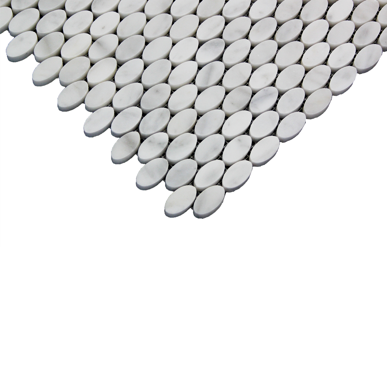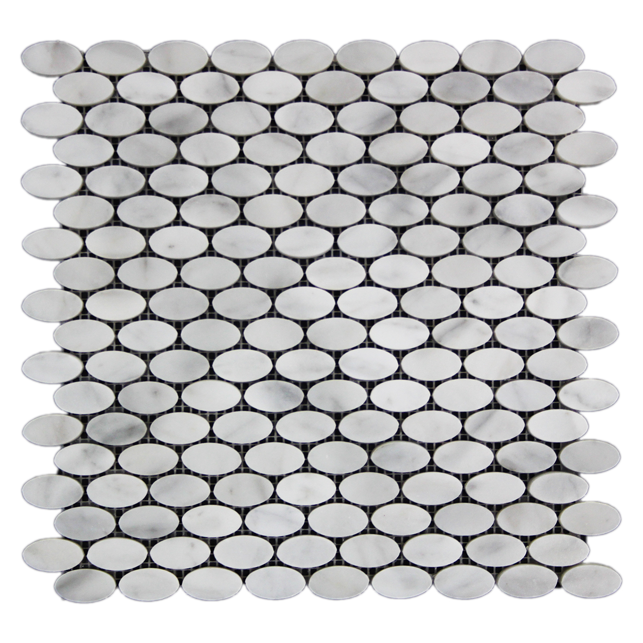 Carrara White Italian Marble Oval Ellipse Mosaic Tile Honed