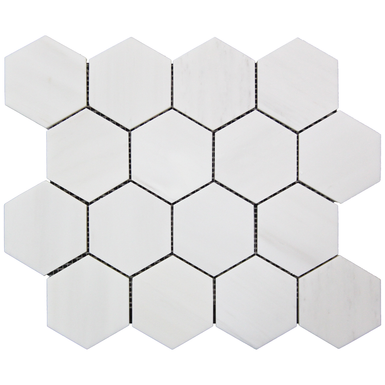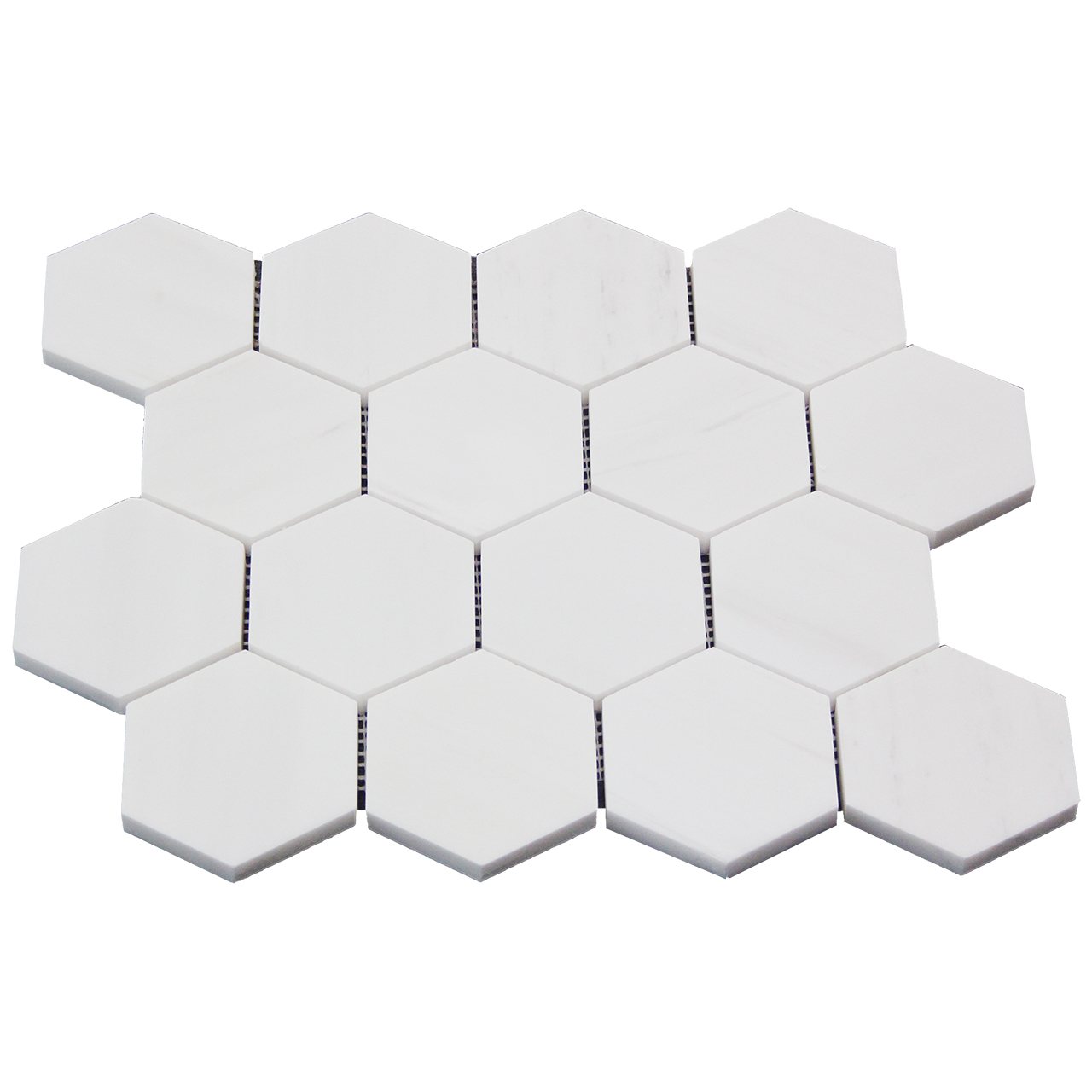Bianco Dolomite Marble 3" Hexagon Mosaic Tile is also known as Bianco Dolomiti Marble 3 inch Hexagon (Honeycomb) Tile. Premium grade marble 3 inch hexagon tile is a great choice for both residential and commercial projects. 3 inch Hexagon Tiles are especially preferred as floor tiles for their clean, stunning qualities. A huge selection of coordinating products are available, including Bianco Dolomite basketweave mosaic tile, Bianco Dolomite 1" hexagon mosaic tile, Bianco Dolomite 3x6 subway mosaic tile, >Bianco Dolomitearabesque mosaic tile, Bianco Dolomite Bullnose pencil molding. Bianco Dolomite Italian Marble collection available in honed and polished finishes.
