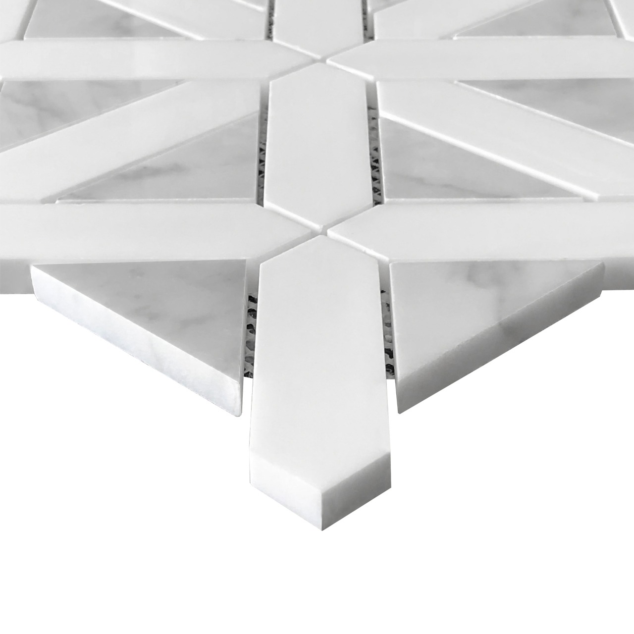 Bianco Dolomite Marble with Carrara White Triangles Geometrica Mosaic Tile Polished