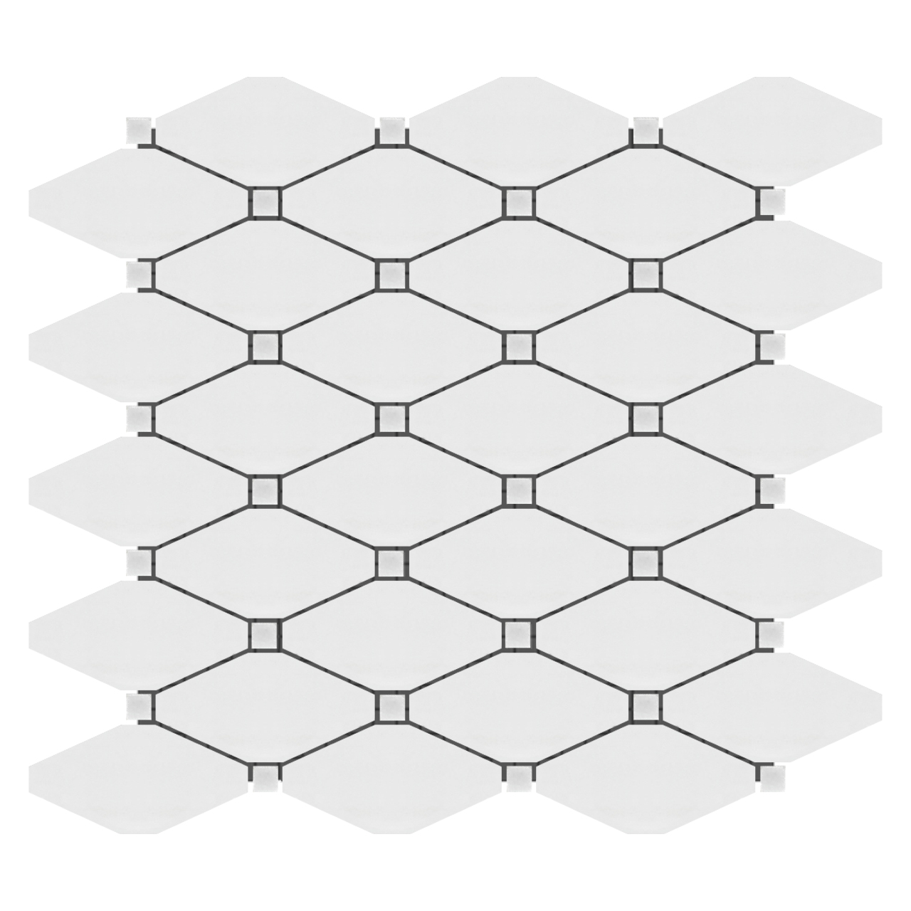 Bianco Dolomite Marble Long Octagon Rhomboid Mosaic Tile Honed