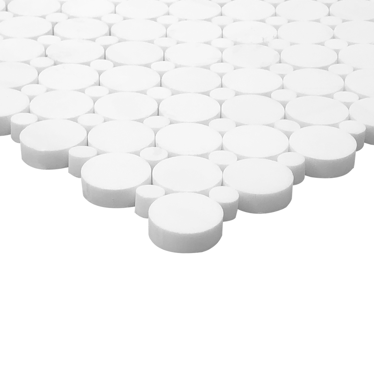 Bianco Dolomite Marble Penny Circles Mosaic Tile with Bianco Dolomite Circles Polished