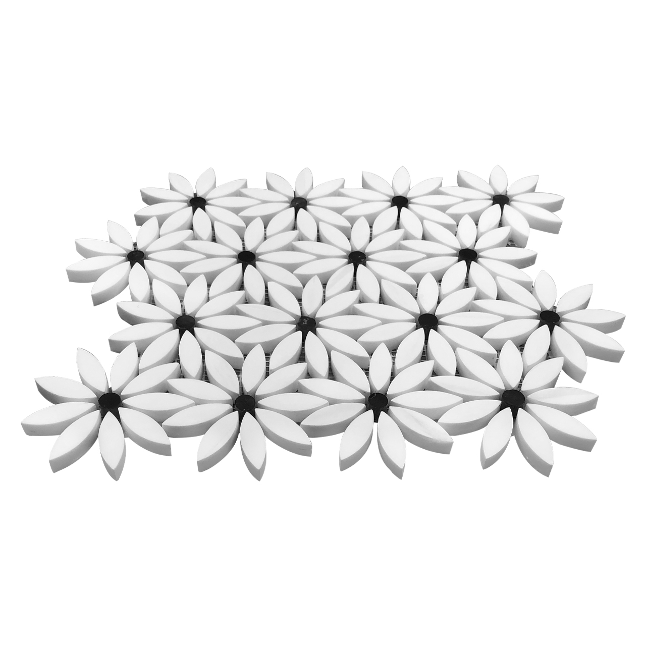 Bianco Dolomite Daisy Flower Waterjet Mosaic Tile also known as Dolomiti White Flower Waterjet Mosaic Marble. Available in honed, polished finishes. Premium grade (daisy) flower mosaic tile perfect for both residential and commercial projects. (flower) daisy Mosaic Tiles mainly preffered as floor tiles for its clean, aesthetic qualities. A large selection of coordinating products are available and includes Bianco Dolomite basketweave mosaics, Bianco Dolomite herringbone mosaics, Bianco Dolomite hexagon mosaics, 3x6 marble subway tiles, 12x12 Bianco Dolomite marble tiles, 4x4 Bianco Dolomite marble tiles, Bianco Dolomite Borders, Bianco Dolomite moldings and Bianco Dolomite Baseboards.