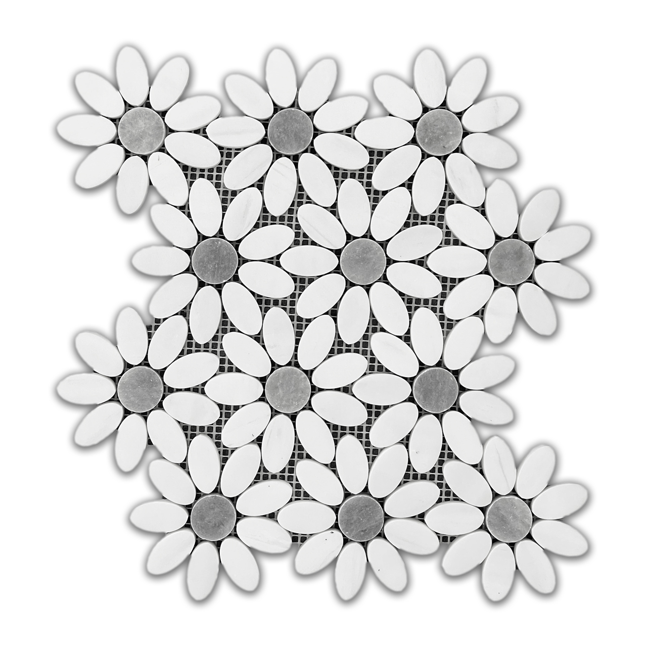Bianco Dolomite Marble With Bardiglio Gray Accent Flower Waterjet Mosaic Tile Honed