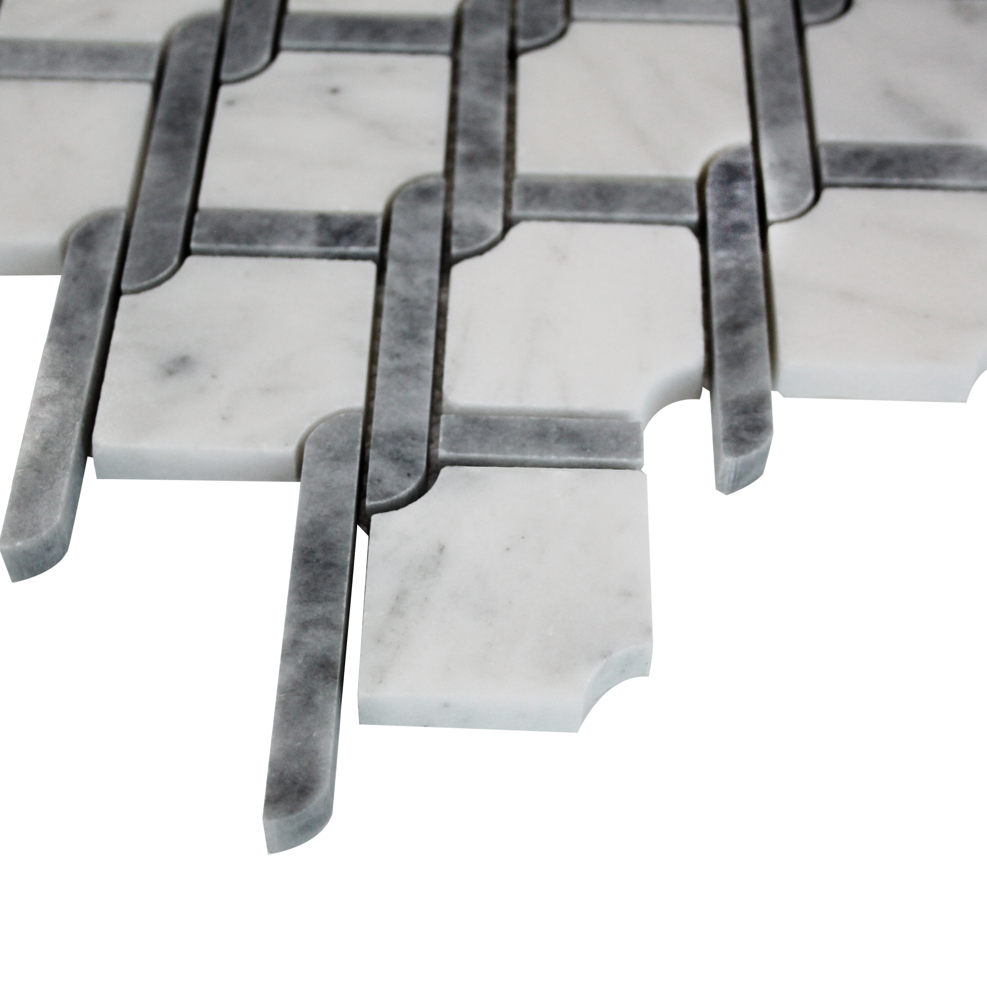 Carrara White Italian Marble Marbella Lynx Rope Design with Bardiglio Gray Strips Mosaic Tile Polished