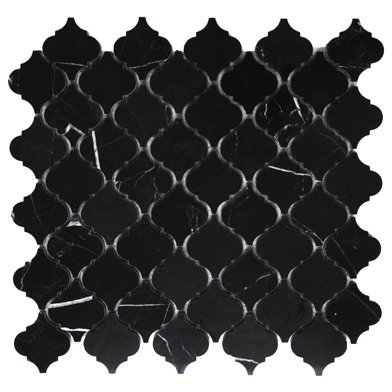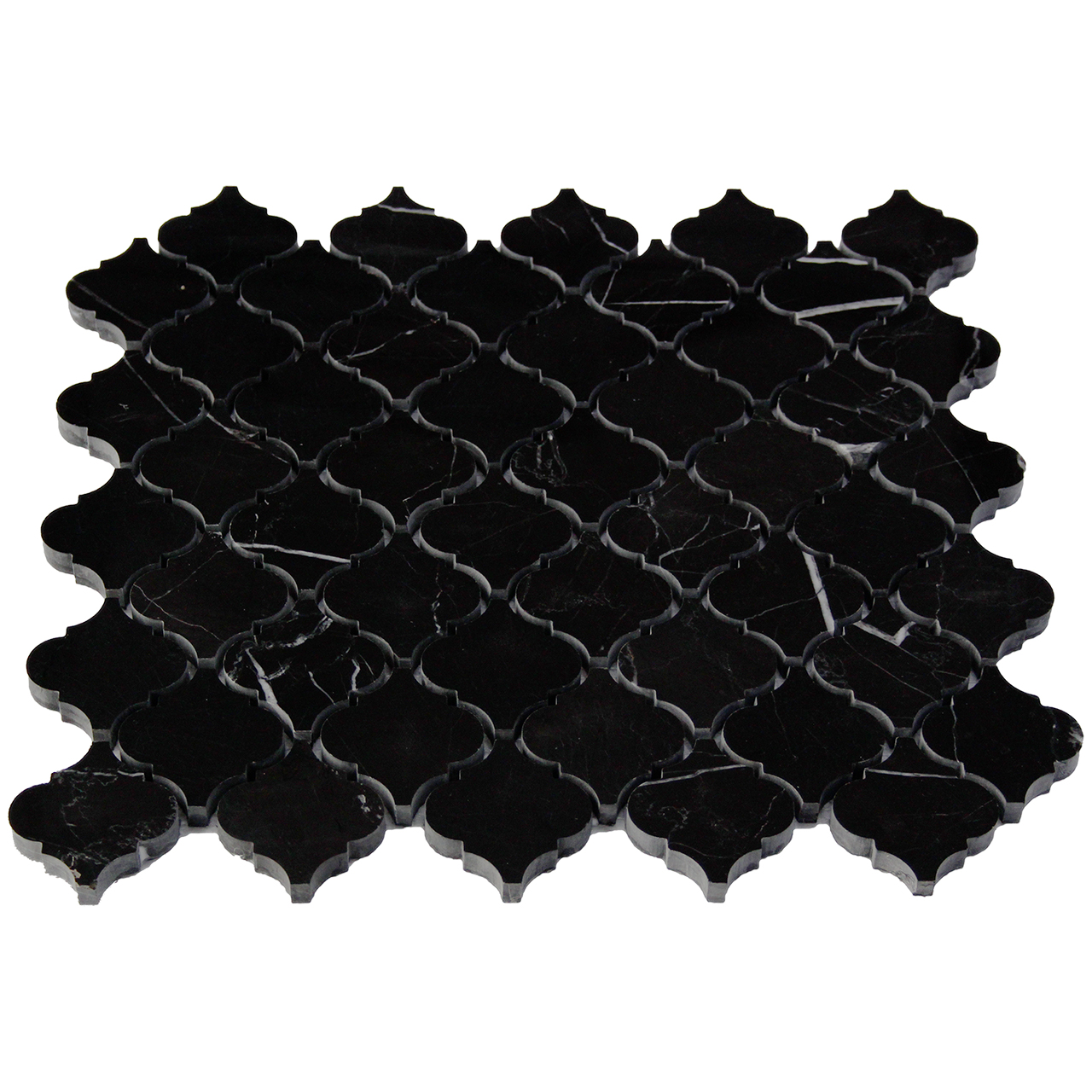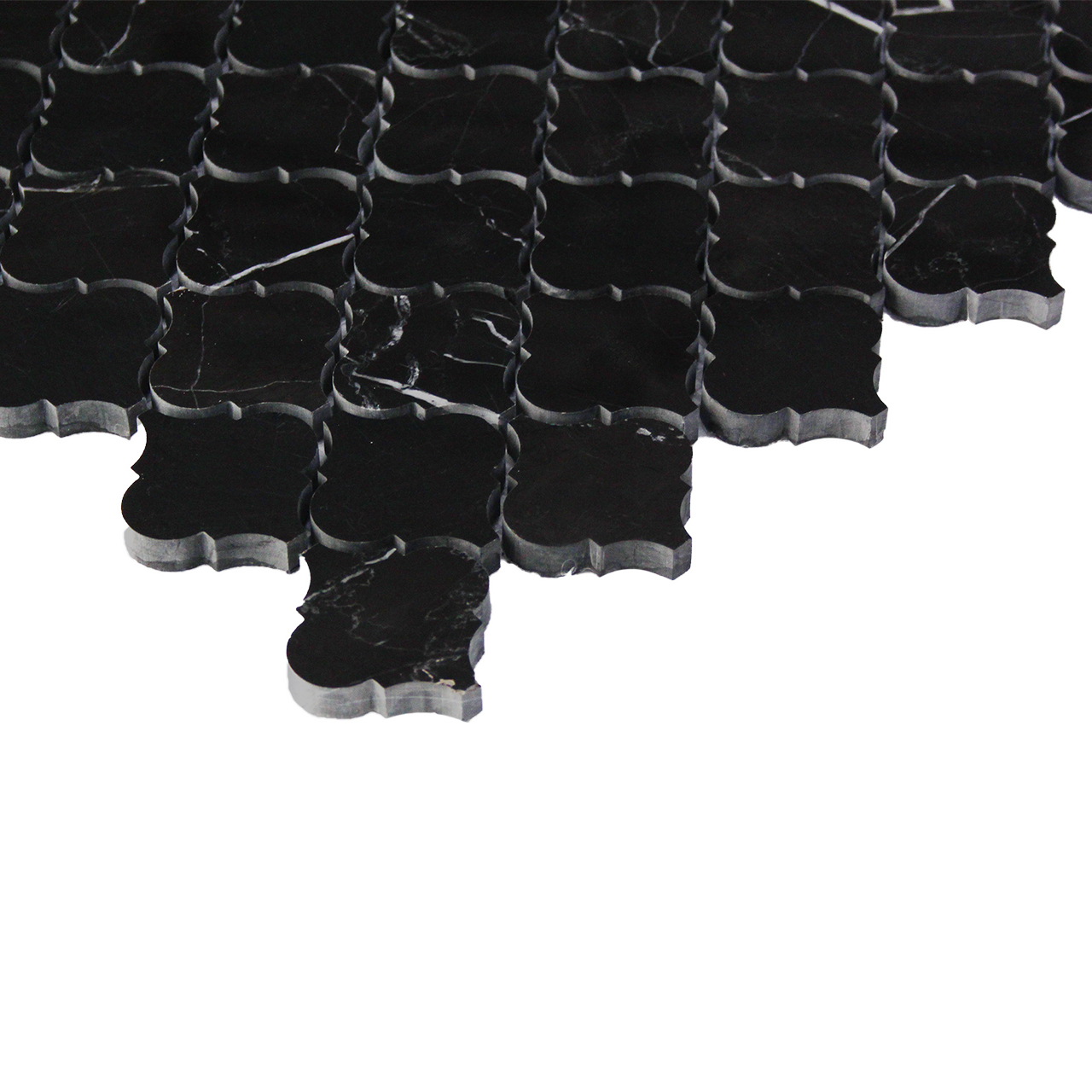 - Premium Grade Nero Marquina Black Marble Mini Arabesque Lantern Mosaic Tile Polished