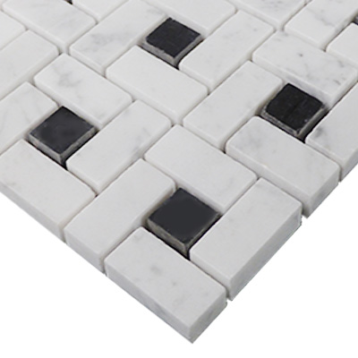 Target Pinwheel Pattern Marble Mosaic Tile with Nero Marquina Black Dots Polished - Premium Grade Italian White Carrera Marble Bianco Carrara