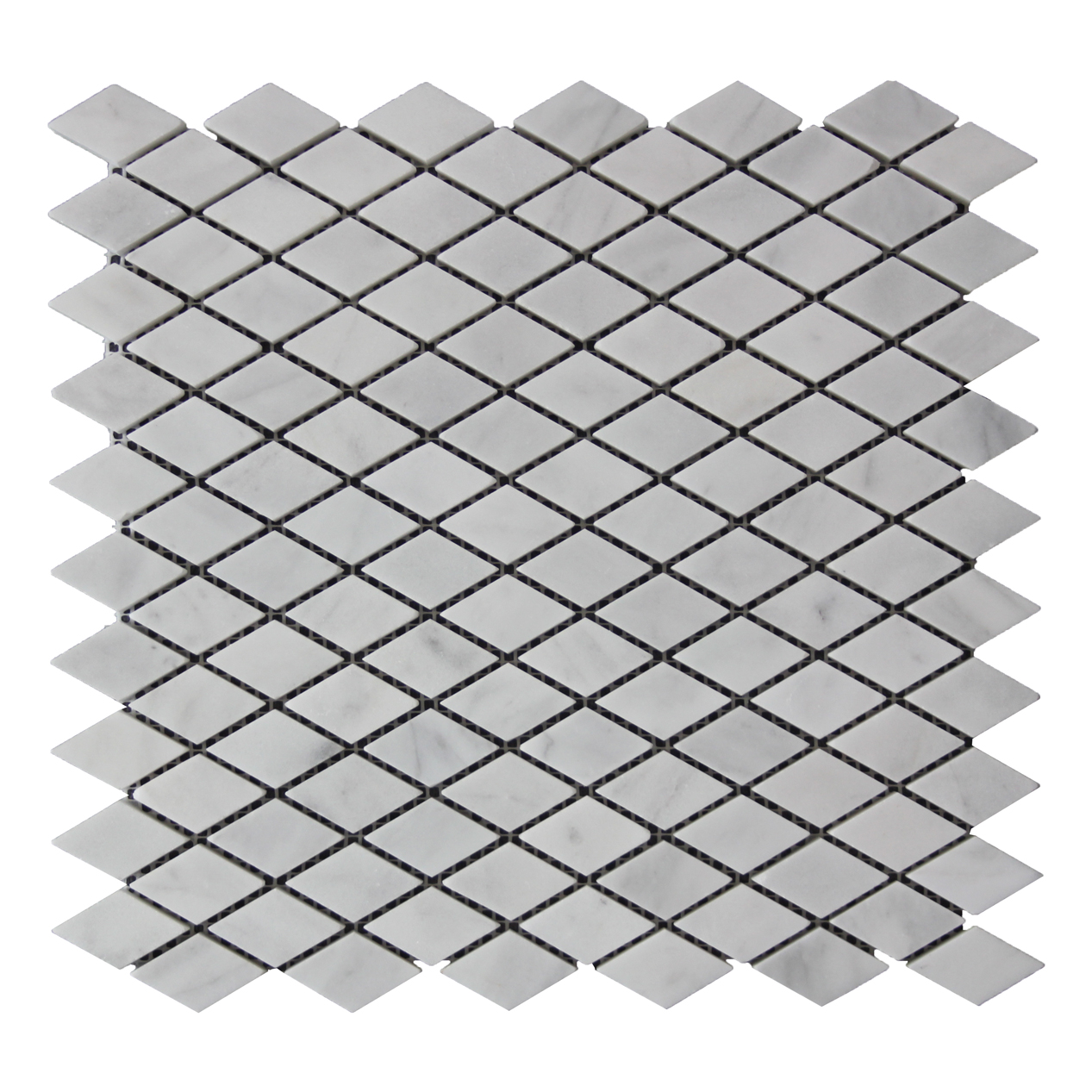 Carrara White Diamond Mosaic Tile also known as Carrera Gold Diamond Mosaic Marble. Available in honed, polished finishes. Premium grade (rhomboid) Diamond mosaic tile perfect for both residential and commercial projects. (rhomboid) Diamond Mosaic Tiles mainly preffered as floor tiles for its clean, aesthetic qualities. A large selection of coordinating products are available and includes Carrara White basketweave mosaics, Carrara herringbone mosaics, Carrara hexagon mosaics, 3x6 marble subway tiles, 12x12 Carrara marble tiles, 4x4 Carrara marble tiles, Carrara borders, Carrara moldings and Carrara baseboards.