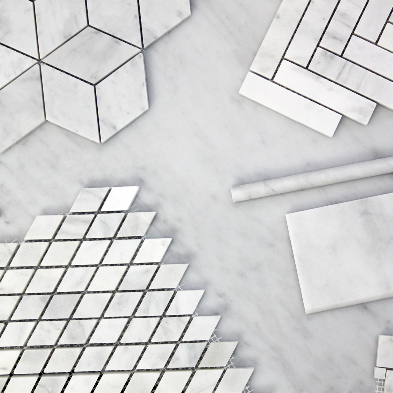 Premium Grade Carrara White Marble Diamond Mosaic Tile Glossy Polished
